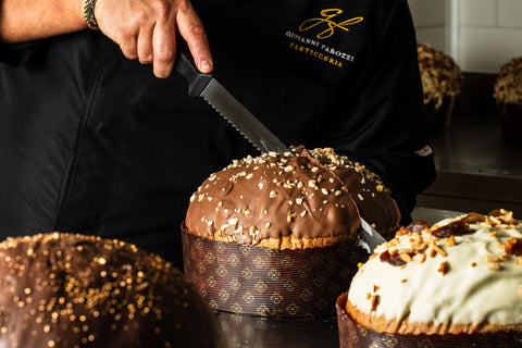 Accompagnato da un barattolo di crema al pistacchio di Bronte, è glassato con cioccolato al